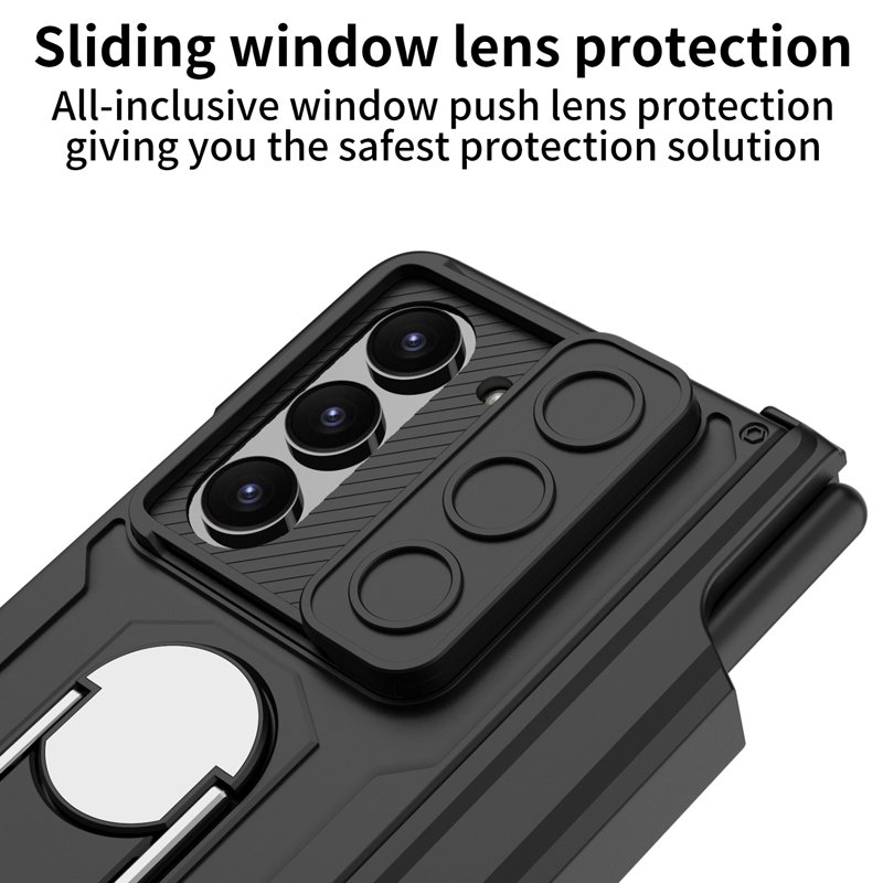- Upphöjda kanter och kamerasliderdesign för att skydda kameralinse och skärm mot repor och slitage