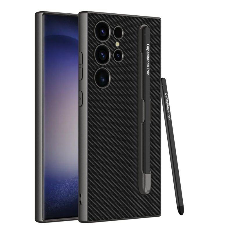 GKK Samsung Galaxy S23 Ultra Fodral - PU + TPU - Kolfiber - Svart