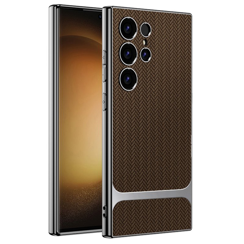 GKK Samsung Galaxy S23 Ultra Fodral - Woven Pattern TPU + PC - Kaffe