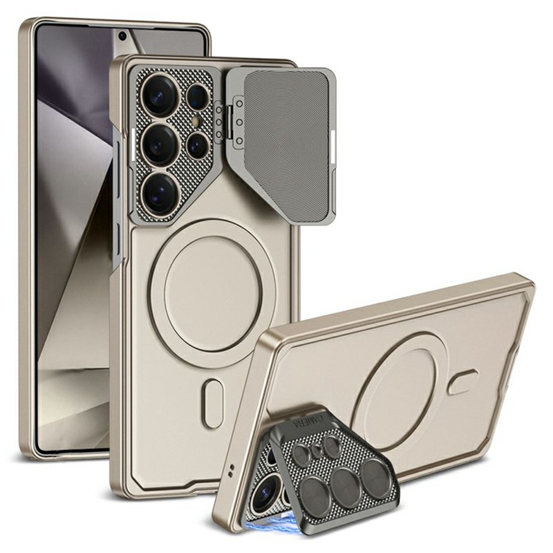 - Metallobjektivskydd med ställfunktion: Skyddar kameran och fungerar som ett praktiskt ställ för handsfree-visning.