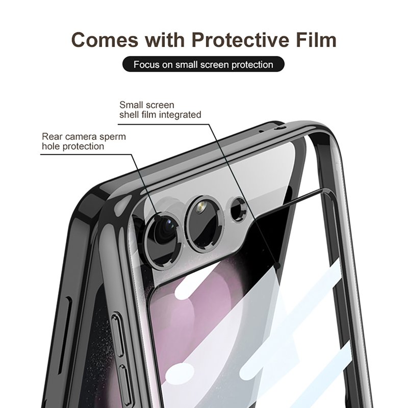 Skydda din Samsung Galaxy Z Flip5 med GKK Fodral i Champagne Gold. Detta fodral är tillverkat av högkvalitativ plast som är både hållbar och slitstark. Med en perfekt passform och smart design erbjuder det både stil och funktionalitet. Fodralet har en magnetisk gångjärn och en finger ring som gör det enkelt att använda din telefon.
