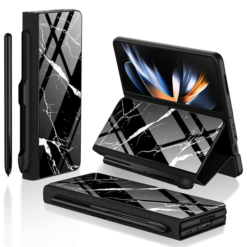 GKK Samsung Galaxy Z Fold4 Fodral Äkta läder - Marmor 07