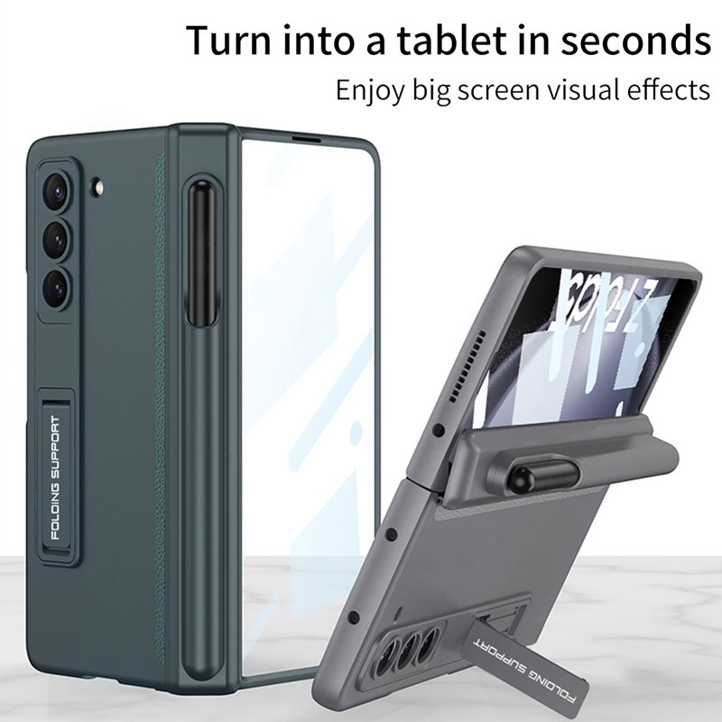 Skydda din Samsung Galaxy Z Fold5 med GKK Fodral Hard PC. Detta fodral kombinerar stil och funktionalitet. Det är både slitstarkt och elegant, vilket gör det till det perfekta valet för din telefon. Med smarta funktioner som kickstand och penna fack, får du en praktisk lösning för vardagen.
