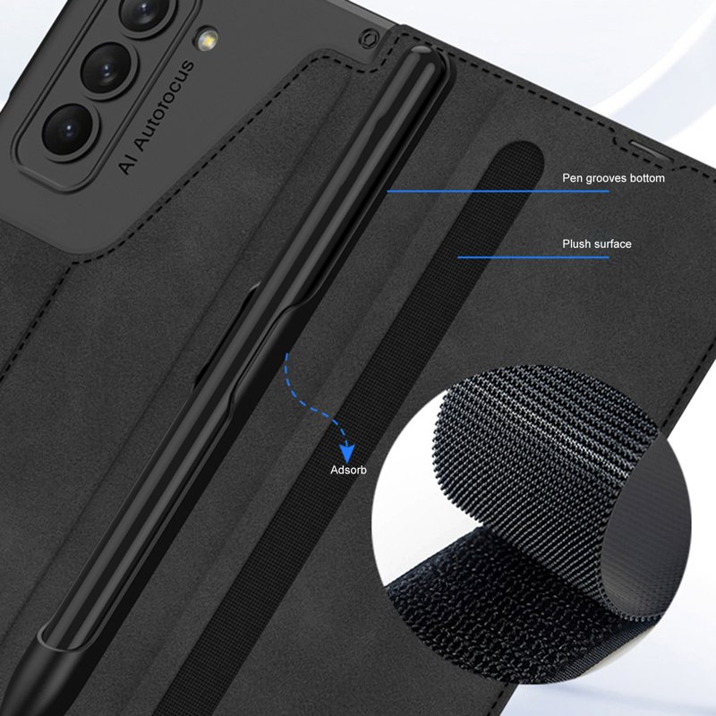GKK Samsung Galaxy Z Fold5 Fodral i PU läder är det perfekta skyddet för din enhet. Med en stilren design och funktionella egenskaper erbjuder detta fodral både säkerhet och bekvämlighet. Det är tillverkat av slitstarkt material som skyddar mot repor och stötar. Perfekt för den som vill ha både stil och funktionalitet.