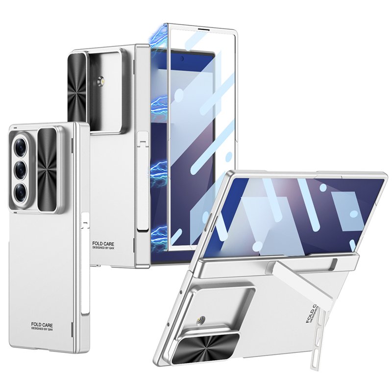 GKK Samsung Galaxy Z Fold7 Fodral Kickstand i silver är det perfekta skyddet för din enhet. Med en kombination av hållbarhet och funktionalitet erbjuder detta fodral enastående skydd och bekvämlighet. Den inbyggda kickstand-funktionen gör det enkelt att njuta av videoinnehåll och hålla videokonferenser utan att hålla i telefonen.