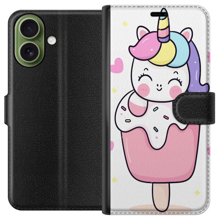 Plånboksfodral för iPhone 17 med Glad enhörning -design. Fodralet kombinerar stil och funktion – ett slitstarkt mobilskal som skyddar mot repor och stötar samt praktiska kortfack på insidan.