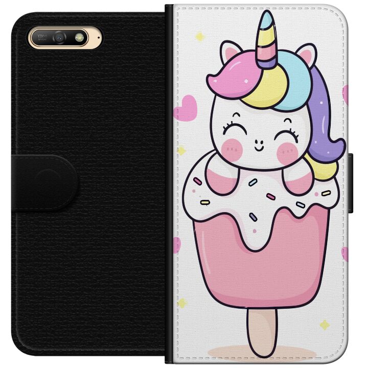 Plånboksfodral för Y6 (2018) med Glad enhörning -design. Fodralet kombinerar stil och funktion – ett slitstarkt mobilskal som skyddar mot repor och stötar samt praktiska kortfack på insidan.
