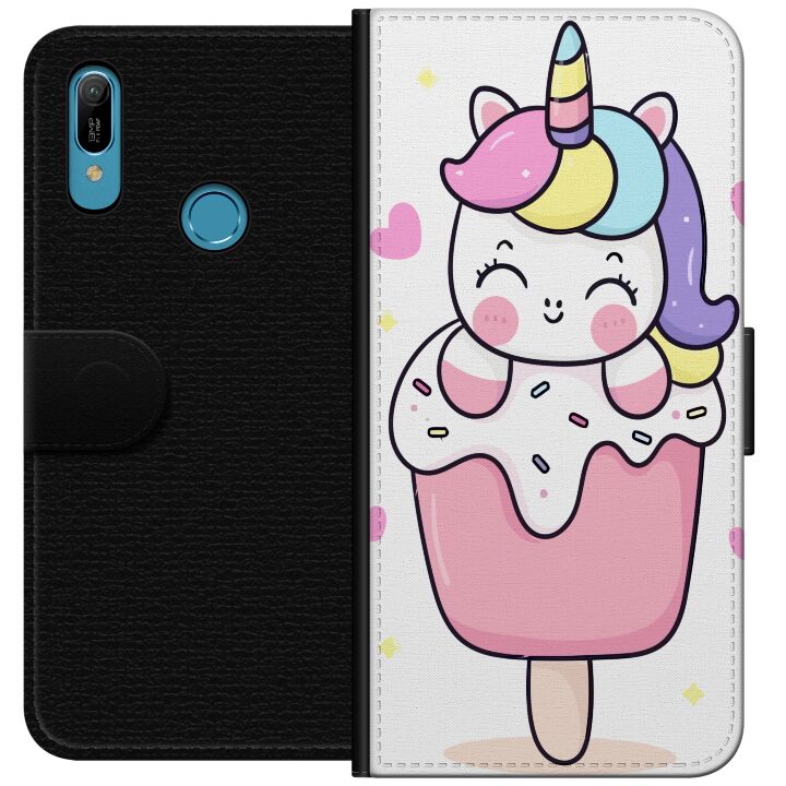 Plånboksfodral för Y6 (2019) med Glad enhörning -design. Fodralet kombinerar stil och funktion – ett slitstarkt mobilskal som skyddar mot repor och stötar samt praktiska kortfack på insidan.