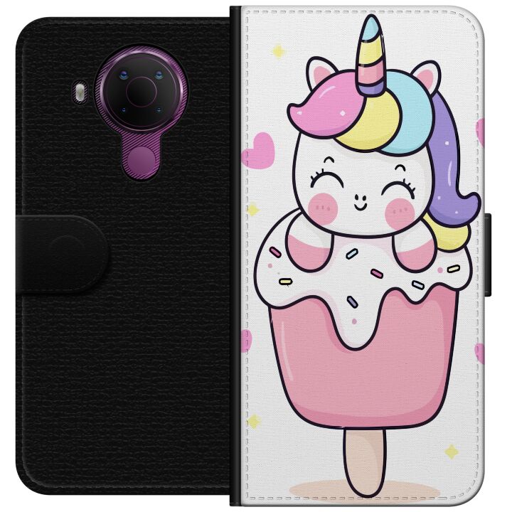 Plånboksfodral för 5.4 med Glad enhörning -design. Fodralet kombinerar stil och funktion – ett slitstarkt mobilskal som skyddar mot repor och stötar samt praktiska kortfack på insidan.