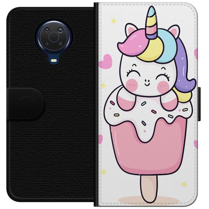 Plånboksfodral för G20 med Glad enhörning -design. Fodralet kombinerar stil och funktion – ett slitstarkt mobilskal som skyddar mot repor och stötar samt praktiska kortfack på insidan.