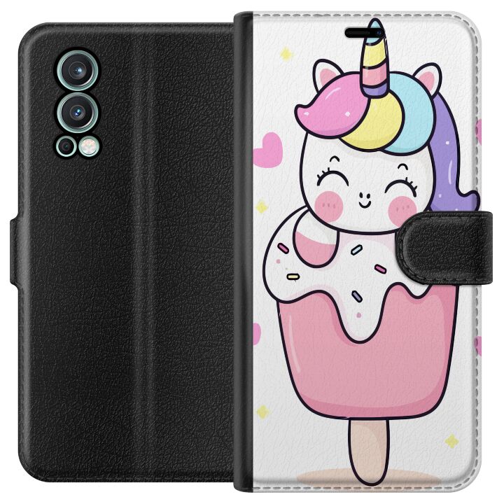 Plånboksfodral för Nord 2 5G med Glad enhörning -design. Fodralet kombinerar stil och funktion – ett slitstarkt mobilskal som skyddar mot repor och stötar samt praktiska kortfack på insidan.