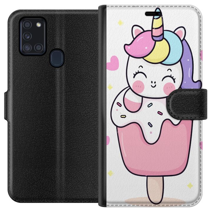 Plånboksfodral till Samsung Galaxy A21s med Glad enhörning