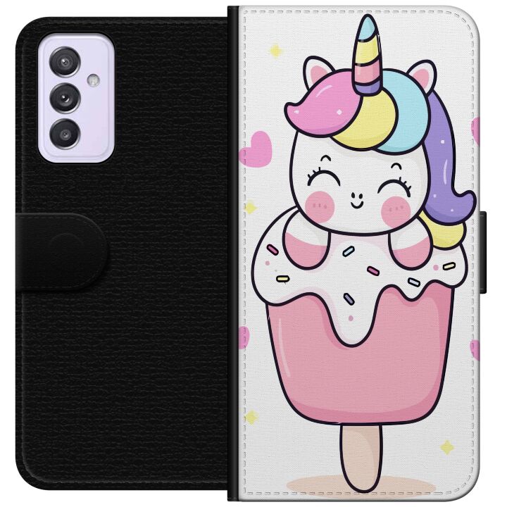 Plånboksfodral för Galaxy A82 5G med Glad enhörning -design. Fodralet kombinerar stil och funktion – ett slitstarkt mobilskal som skyddar mot repor och stötar samt praktiska kortfack på insidan.