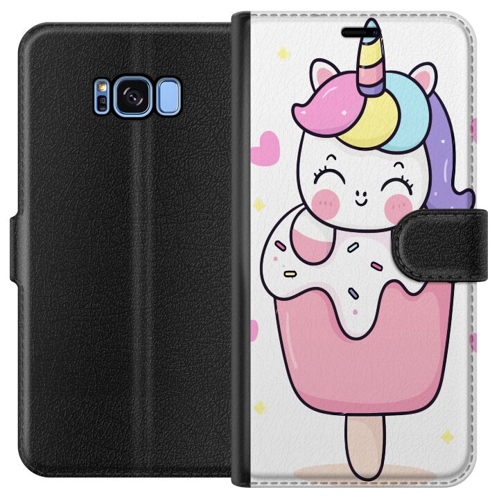 Plånboksfodral för Galaxy S8 med Glad enhörning -design. Fodralet kombinerar stil och funktion – ett slitstarkt mobilskal som skyddar mot repor och stötar samt praktiska kortfack på insidan.