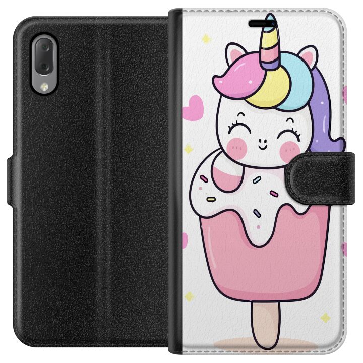 Plånboksfodral för Xperia L3 med Glad enhörning -design. Fodralet kombinerar stil och funktion – ett slitstarkt mobilskal som skyddar mot repor och stötar samt praktiska kortfack på insidan.