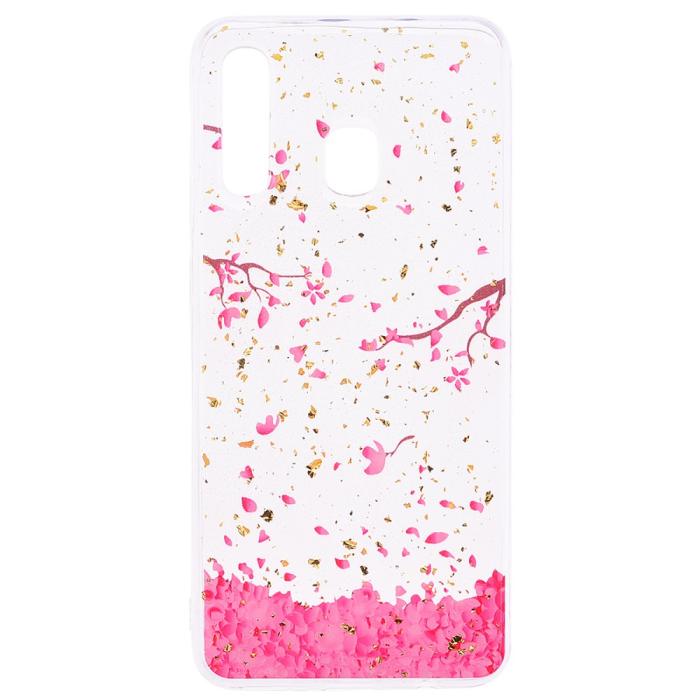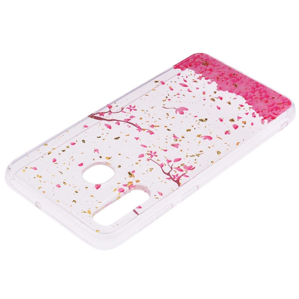Glitter Mobilskal till Samsung Galaxy A40 - Rosa Blommor