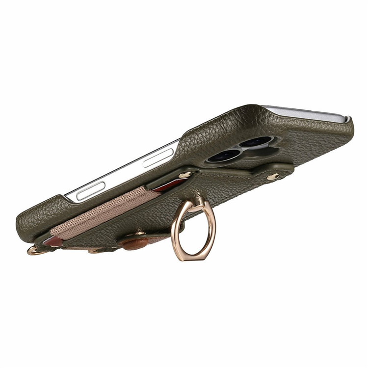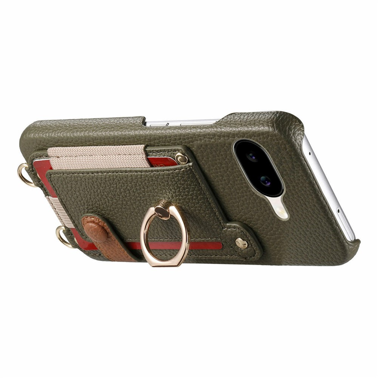 Google Pixel 9a Mobilskal med Korthållare och Axelrem Ring Kickstand Läder - Midnight Grön