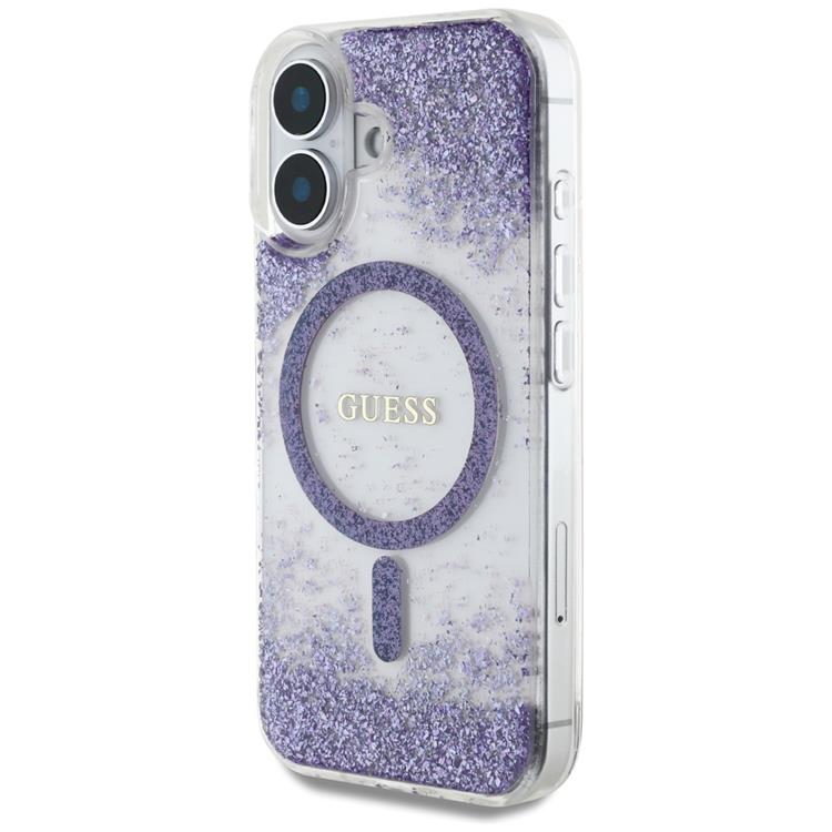 Guess iPhone 16 Mobilskal MagSafe HC Resin Bottom Glitter - Lila