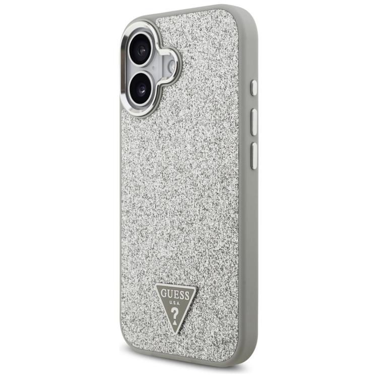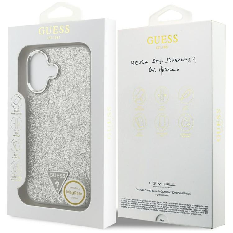 Guess iPhone 17 Mobilskal MagSafe Glitter Triangle Logo - Silver