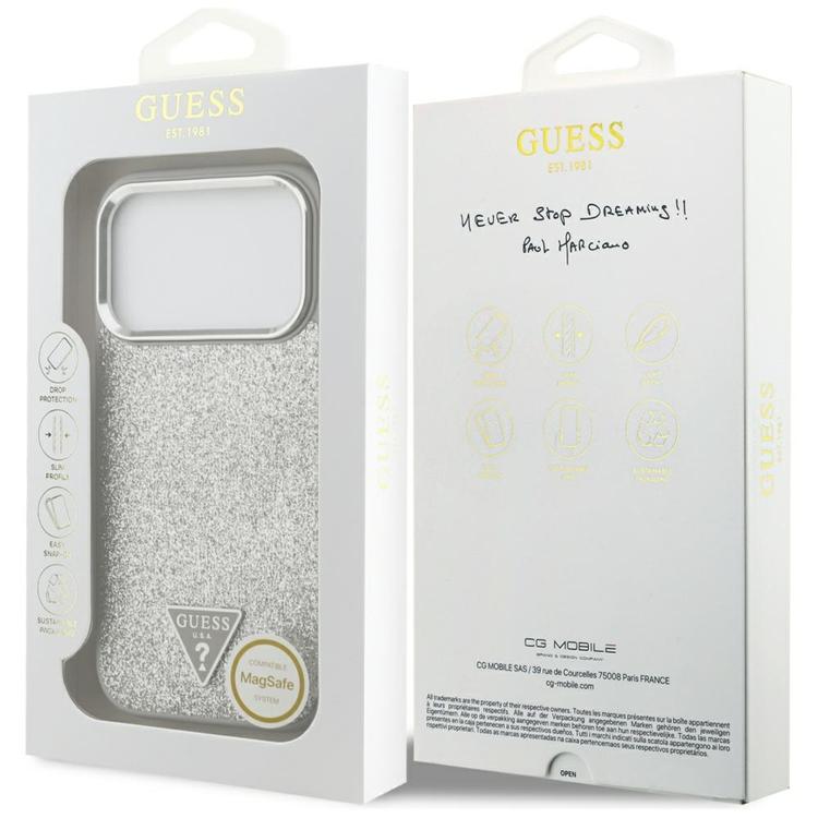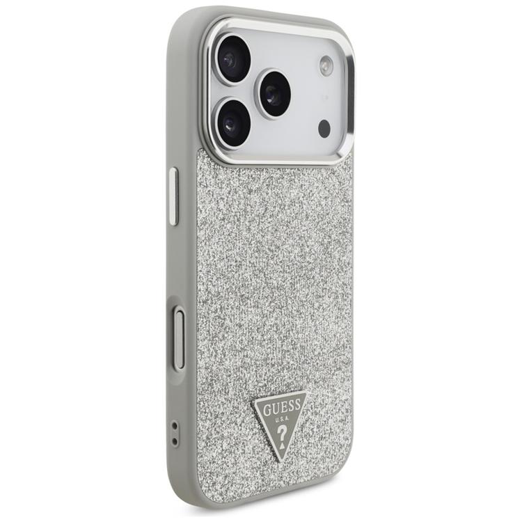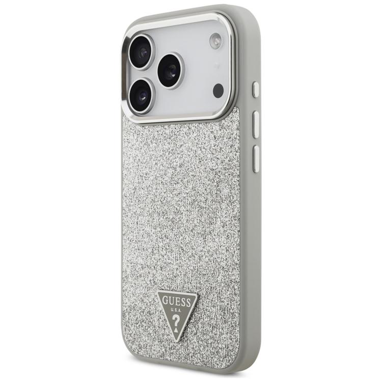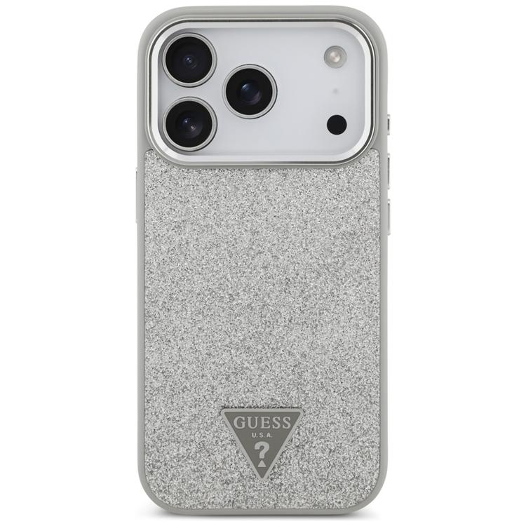 Guess iPhone 17 Pro Mobilskal MagSafe Glitter Triangle Logo - Silver