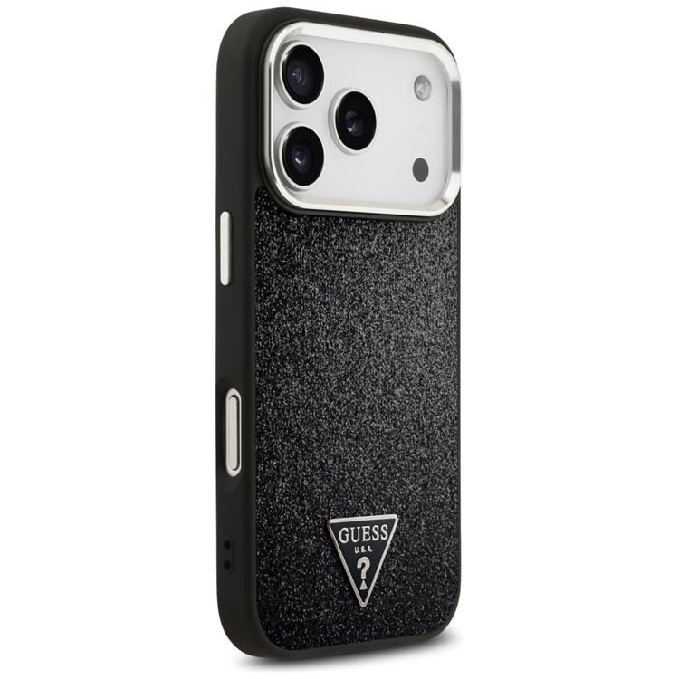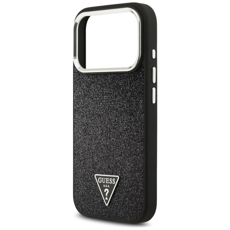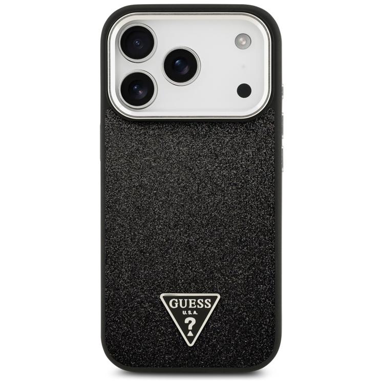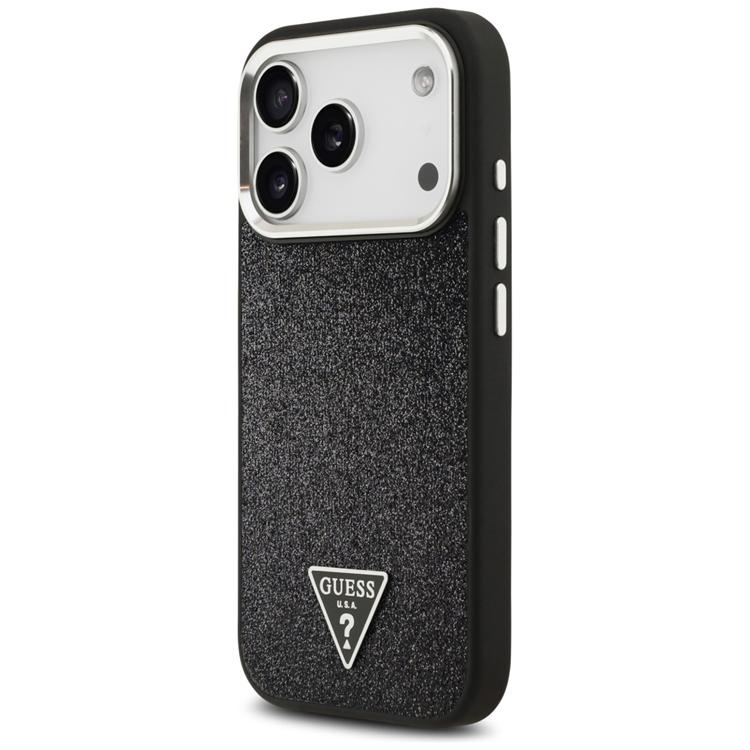 Guess iPhone 17 Pro Mobilskal MagSafe Glitter Triangle Logo - Svart