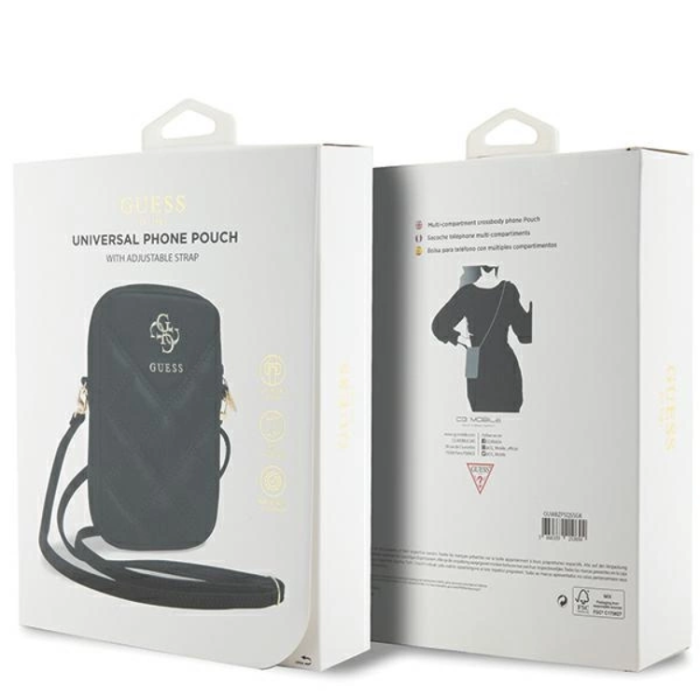 Denna mobilväska är licensierad av Guess och reflekterar märkets ikoniska design och noggranna hantverk.