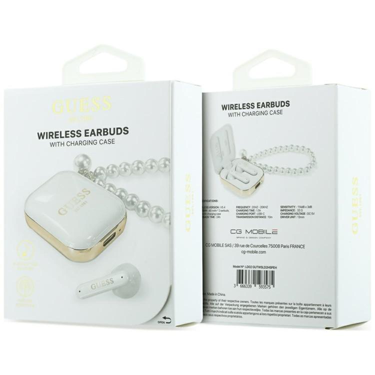 Guess TWS In-Ear Trådlösa Hörlurar Bluetooth 5.4 Pearl Strap - Vit