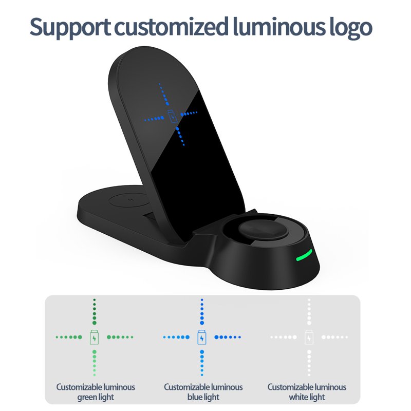 Upptäck den praktiska 3-i-1 trådlösa laddaren H-22. Denna hopfällbara laddare erbjuder snabb och effektiv laddning för smartphones, klockor och hörlurar. Med sin eleganta design håller den ditt skrivbord rent och organiserat. Perfekt för både hemmet och kontoret.