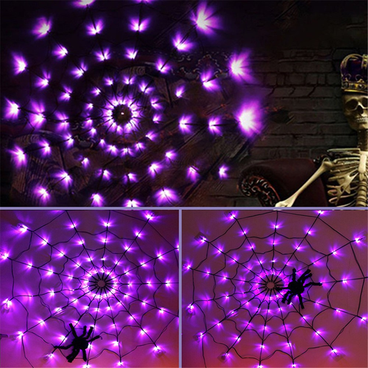 Halloween Spindelnätslampa med Batterilåda 8 Lägen 70LED Feststämningslampa, Utan Spindel - Lila
