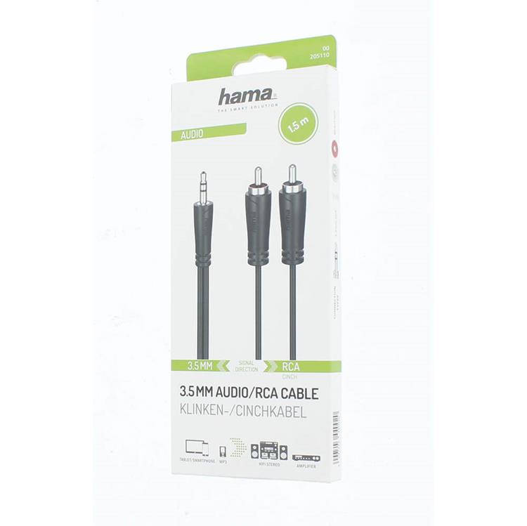 HAMA Ljud Kabel 3,5-2x RCA/1.5m - Svart