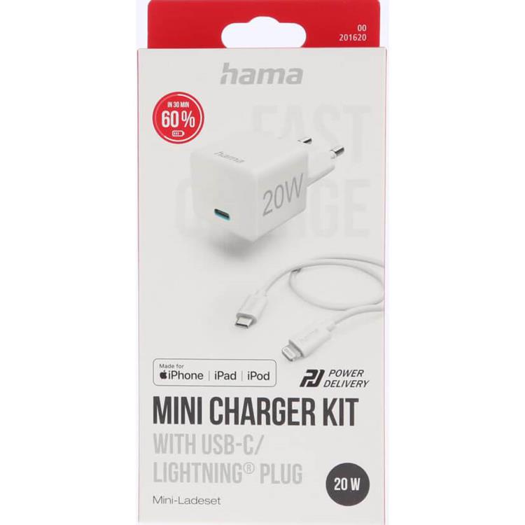 Hama Snabb Väggladdare USB-C 220V USB-C/Lightning Kabel 1m