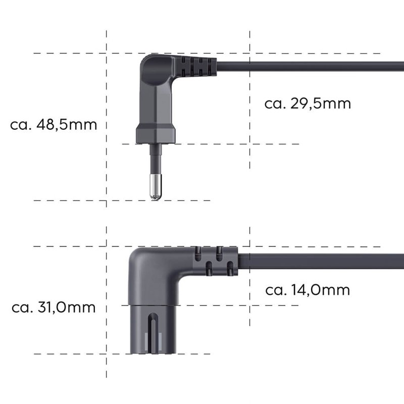 Vinklad stickpropp med europeisk standard anslutningsuttag: Euro 8 på dubbelspår (C7).