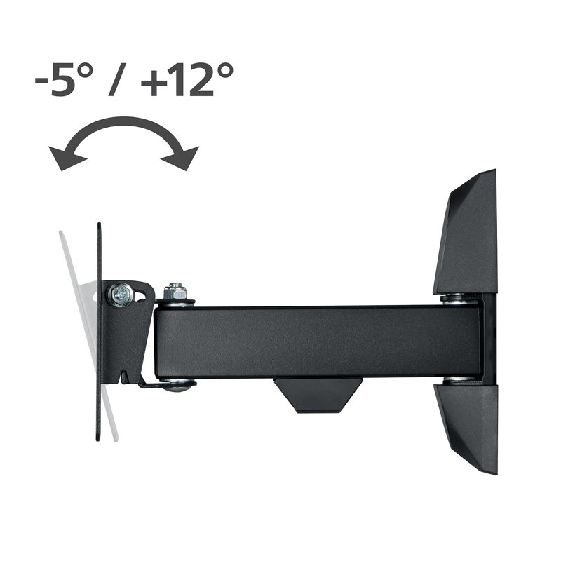 Detta väggfäste är utformat för att förbättra din hemunderhållningsupplevelse genom att ge full rörlighet för din TV. Det stöder platt-TV-apparater med en skärmstorlek på mellan 10" och 26" och en vikt på upp till 15 kg. Fästet kan vridas upp till 180° och lutas +5/-12°, så att du kan hitta den perfekta betraktningsvinkeln från vilken plats som helst i rummet.