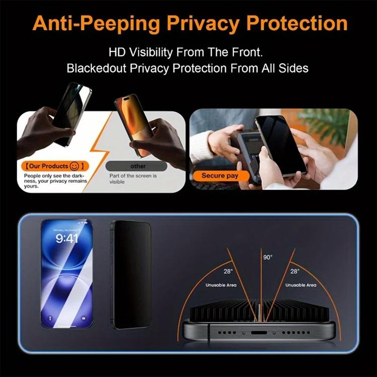 Skydda din mobil – och din integritet – med ett avancerat helskärms integritetsskydd i high aluminium-silicon glas. Perfekt för dig som använder din mobil på bussen, kontoret eller caféet och vill slippa nyfikna blickar. Med 28° anti-spy teknik hålls ditt innehåll synligt rakt framifrån men mörkläggs från sidan. Samtidigt får du ett reptåligt, kristallklart och bubbelfritt skydd tack vare automatisk dammborttagning och smart tvåstegsinstallation. Ett premium skärmskydd som kombinerar säkerhet, hållbarhet och enkel montering – utan kompromisser.