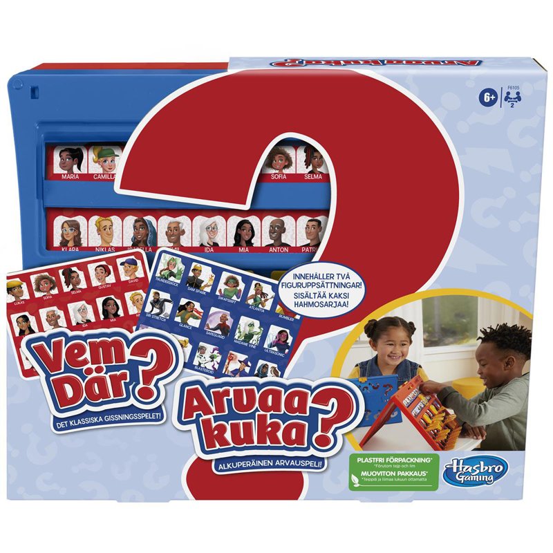 Återupplev barndomens glädje med det klassiska spelet Guess Who? som nu finns tillgängligt för en ny generation. I den här utgåvan får spelarna välja ett mystiskt karaktärskort och använda ja- eller nej-frågor för att lista ut motståndarens karaktär. Spelet innehåller två dubbelsidiga karaktärsark, varav ett med superhjältekaraktärer, som enkelt kan skjutas in och ut ur ramen för snabb installation.