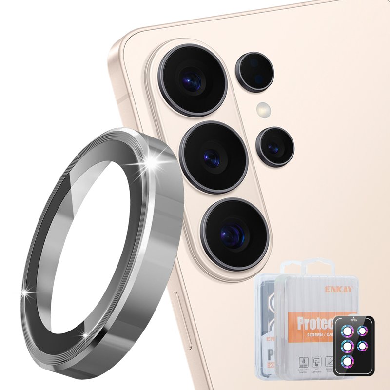 Skydda din Samsung Galaxy S26 Ultra med ENKAY Hat-Prince Metal Ring Lens Film. Denna kameralins skyddare erbjuder robust skydd och bevarar kvaliteten på dina bilder och videor. Med en enkel installation får du långvarigt skydd utan bubblor. Perfekt för den som vill ha både stil och funktionalitet.