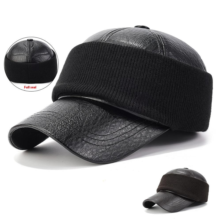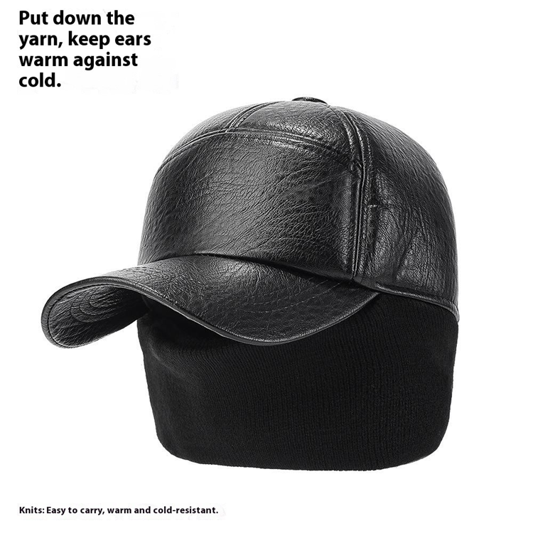 Herr Basebollkeps med Öronflikar PU-läder Varm Utomhusmössa Höst Vinter - Brun