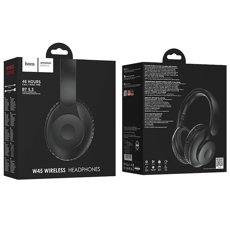 Hoco W45 kombinerar modern teknik med en bekväm och användarvänlig design. Med lång batteritid och flera anslutningsalternativ är de ett perfekt val för alla som söker pålitliga och flexibla hörlurar.