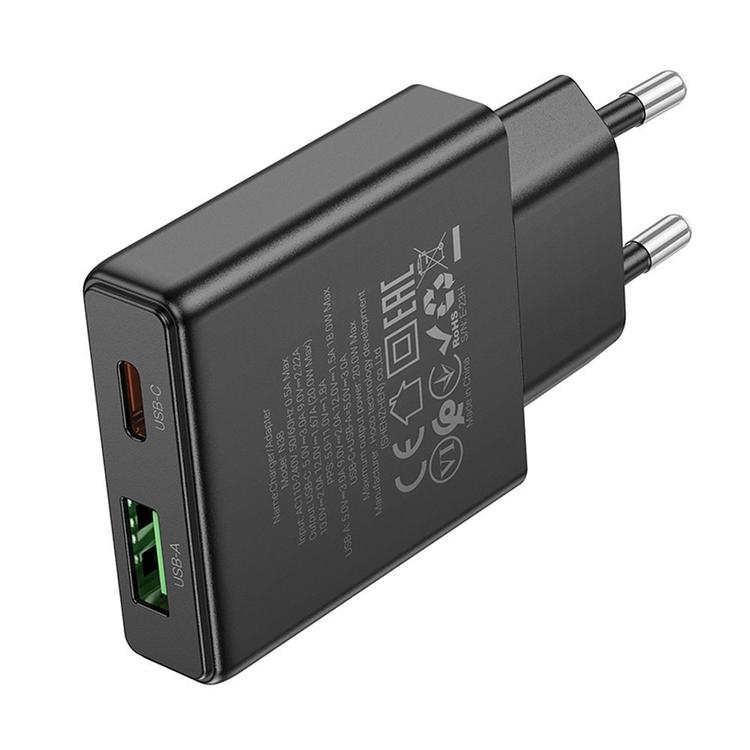 Hoco Slim Snabbladdare PD 20W USB-A USB-C QC3.0 3A N38 - Svart