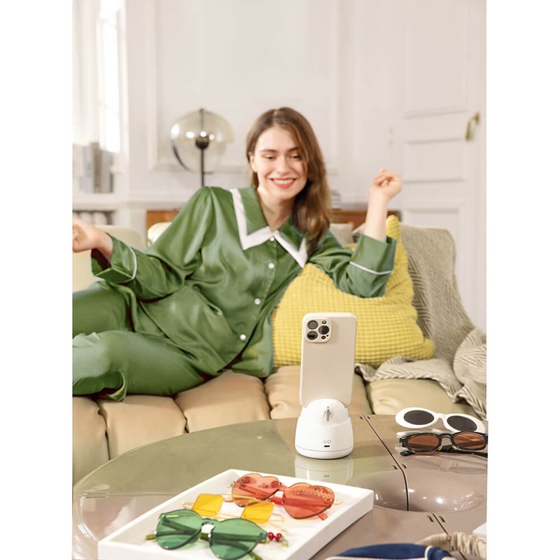 Hohem GO är en hållare för telefon och surfplatta med 2-axlig, 360 graders automatisk spårning. Detta låter dig livestreama videomöten, dans, fitness och vloggar. Denna smarta hållare är din assistent och kommer igång på några sekunder. Den fungerar utan behov av en APP eller bluetooth och har AI Face Tracking. Ge den en OK-gest för att starta och en handflatsgest för att stoppa.