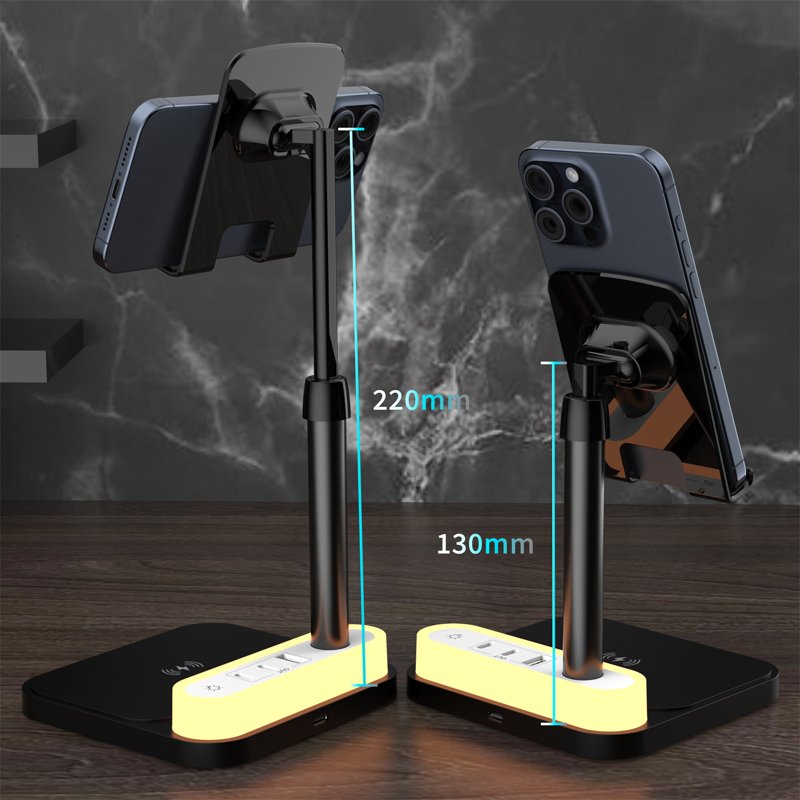 HT-531 Trådlös laddare 15W med nattlampa och telefonstativ - Svart