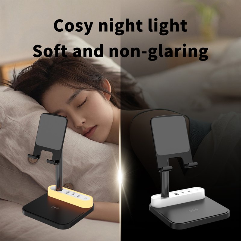 Upplev bekvämligheten med vår 15W trådlösa snabbladdare. Den laddar dina kompatibla enheter snabbt och effektivt utan kablar. Dessutom fungerar den som en mysig nattlampa, vilket gör den perfekt för natten. Håll din telefon laddad och tillgänglig när du behöver den.
