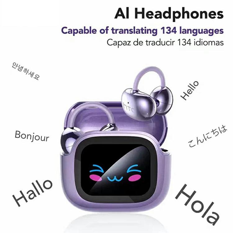 HTC In-Ear Trådlösa Hörlurar Bluetooth AI-översättare 135 Språk Realtidsöversättning HiFi-Ljud Clip-On NE32 - Lila
