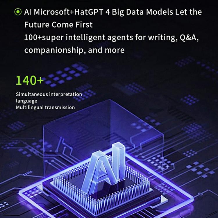 Funktioner: Touchskärm, spellägen (film/musik/spel), ljusstyrka, AI-översättning, timer, tapetbyte, språkbyte, samtalsvisning