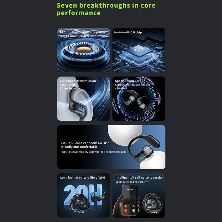 HTC Open-Ear Trådlösa Hörlurar Bluetooth V6.0 Lång Batteritid Hög Ljudkvalitet NE02 - Svart