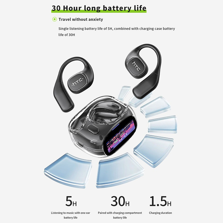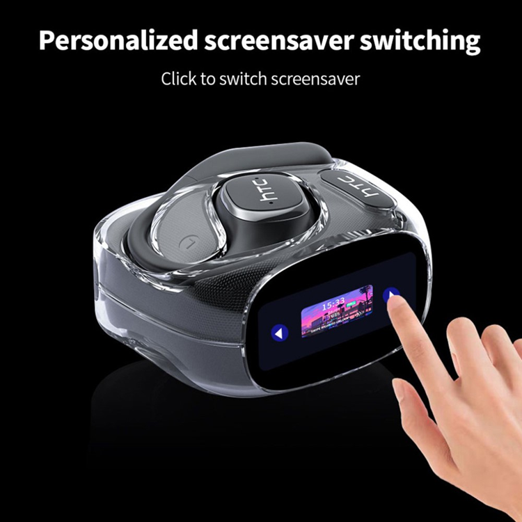 HTC Trådlösa Bluetooth 6.0 Hörlurar med LCD-skärm AI Translation On-Ear Bass Stereo Sound Smart NE11 - Svart
