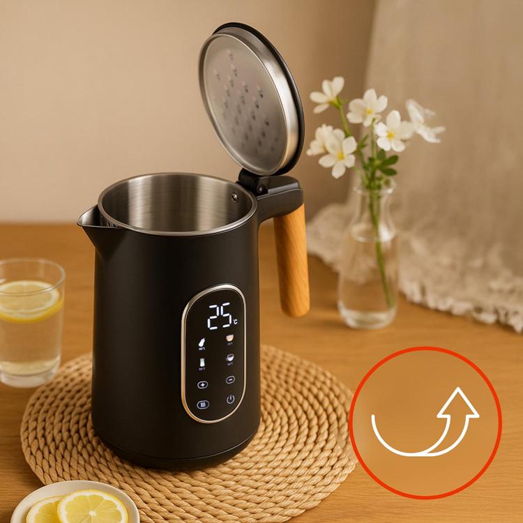 Huslog HUS1049 kombinerar modern teknik med stilfull design, och ger dig en vattenkokare som både förenklar vardagen och lyfter kökets utseende. Med sin sofistikerade touchpanel och ett ergonomiskt handtag i trälook blir varje användning både smidig och estetisk. Den inre konstruktionen i rostfritt stål 304 garanterar ren smak och lång hållbarhet, samtidigt som den 1,7-liters kapaciteten gör den idealisk för både vardag och gäster.