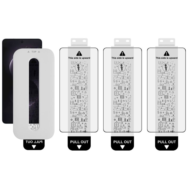 Förpackningen innehåller: 3 x Härdat glas skärmskydd, 3 x Alkoholpaket, 1 x Dammfri installationsverktyg