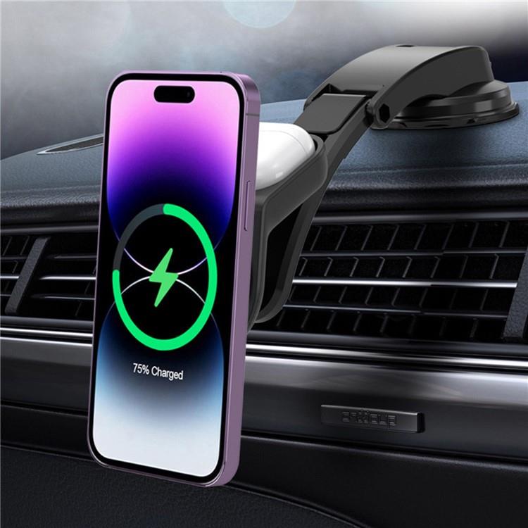 2IN1 Instrumentbräda Bilhållare 15W Magnetisk Trådlös För Mobil/Hörlurar - Svart