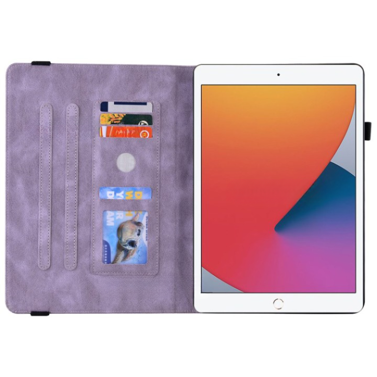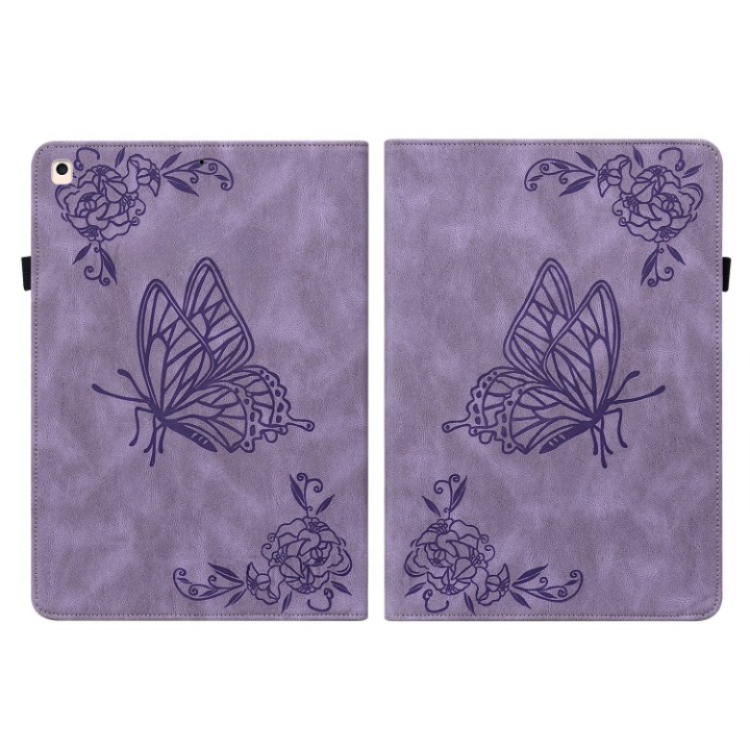 iPad 10.2 (2019/2020/2021) Fodral Imprinted Butterfly Flower PU-Läder Kortplatser Stötsäkert Folio med Resårband - Lila